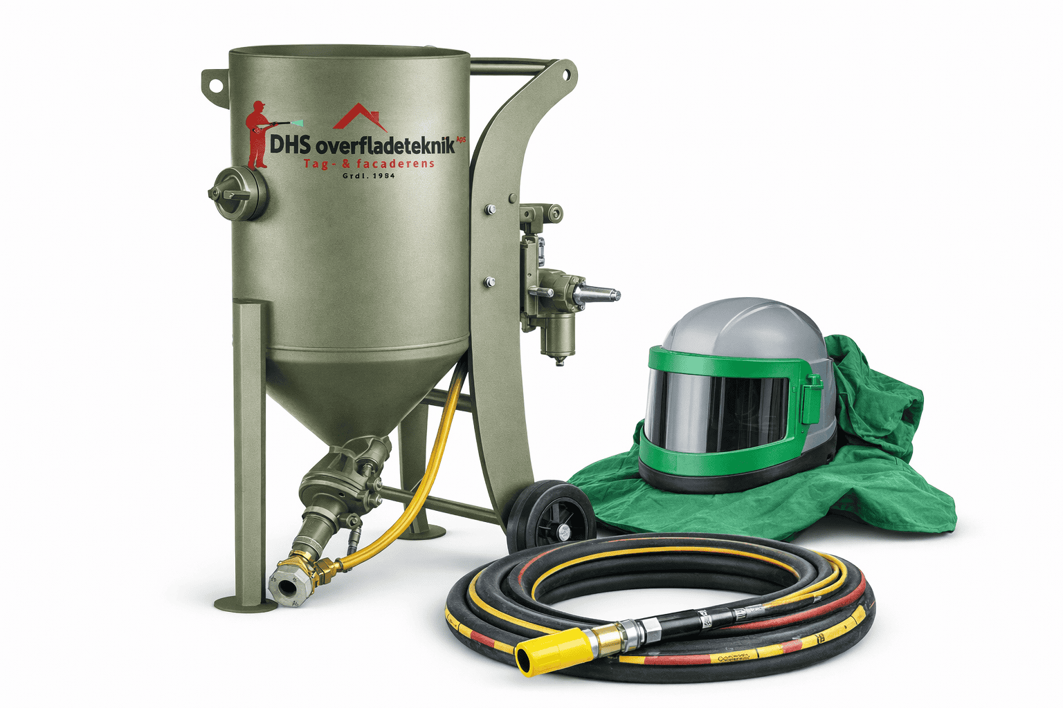 Komplet 140 liters sandblæser potte, inkl slanger & hjelm